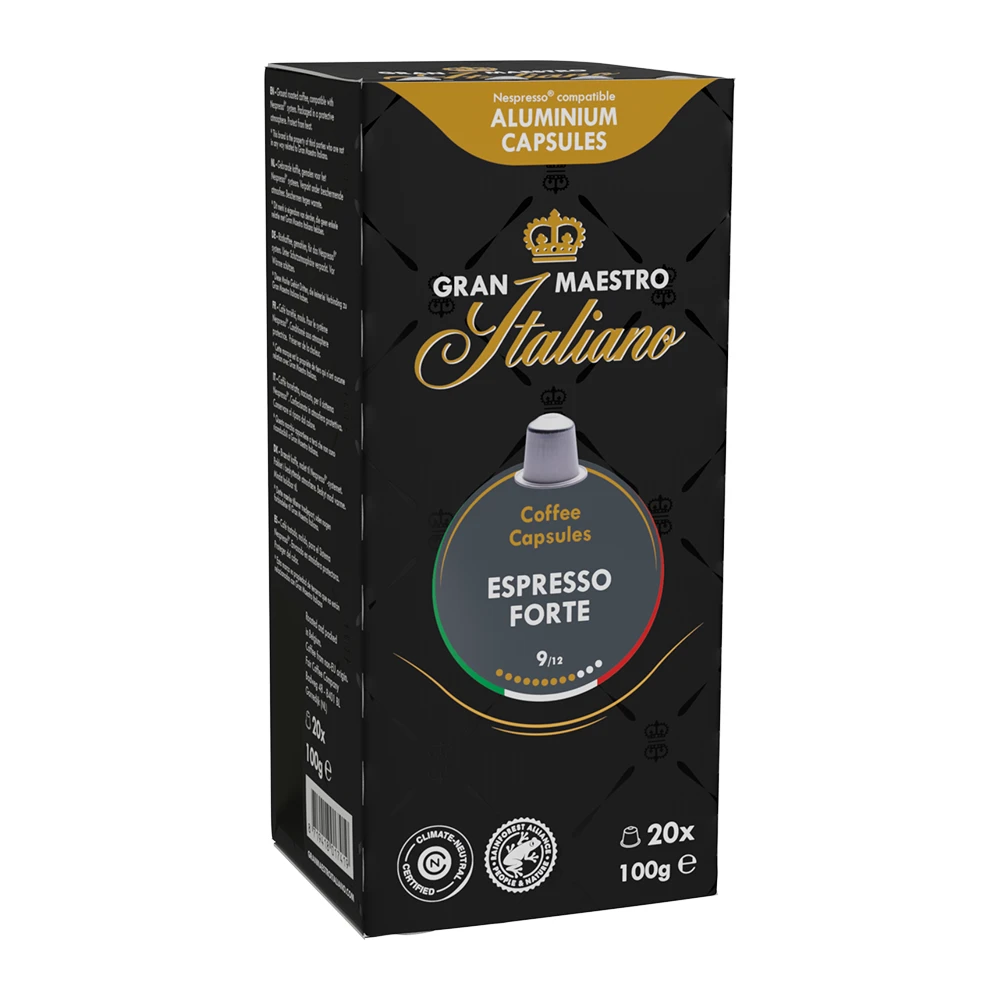 Maak kennis met Gran Maestro Italiano capsules voor Nespresso® zetsystemen. Het is het bestverkochte koffiemerk van Koffievoordeel, en dat is niet voor niets. Deze koffiebrander maakt koffie om blij van te worden: een geluksmoment, elke keer weer. Gran Maestro Italiano koffie is Rainforest Alliance gecertificeerd en wordt tevens klimaatneutraal geproduceerd. Zo waarborgen ze dat ook toekomstige generaties van deze kwaliteitskoffies kunnen genieten. Gran Maestro Italiano koffie smaakt niet alleen heel erg goed, maar doet ook goed!