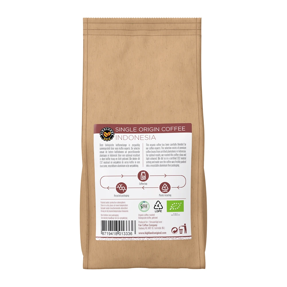 Deze single origin koffie is afkomstig van het Indonesische eiland Bali. De biologische bonen worden zorgvuldig geteeld en hebben een zijdezachte, volle body. Qua smaak onderscheidt de Indonesia zich door het romige aroma met tonen van vanille, gember en donkere honing.