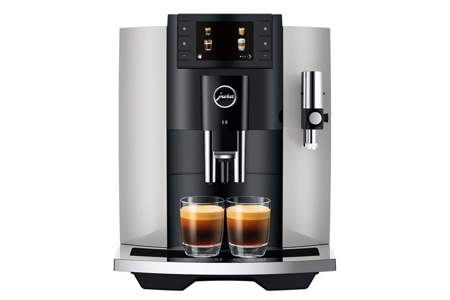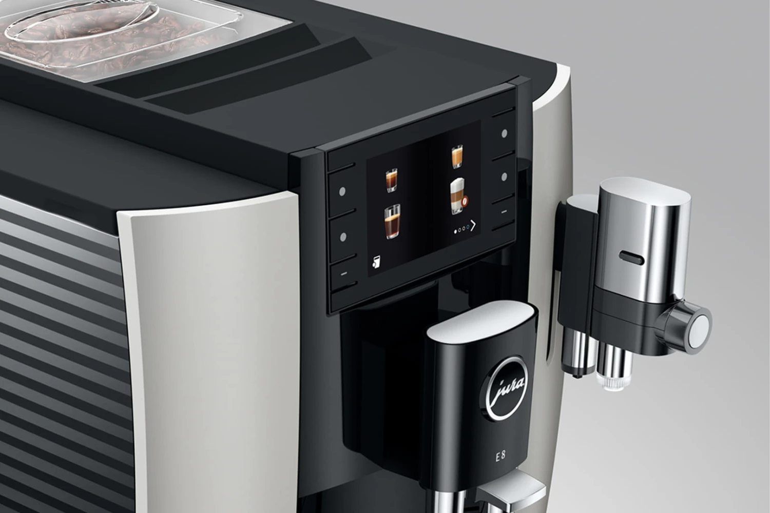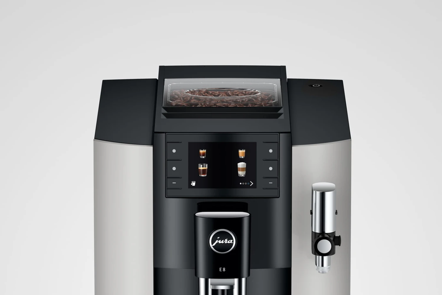 Jura E8 koffiemachine is de complete volautomaat voor thuisgebruik met professionele koffiemolen
