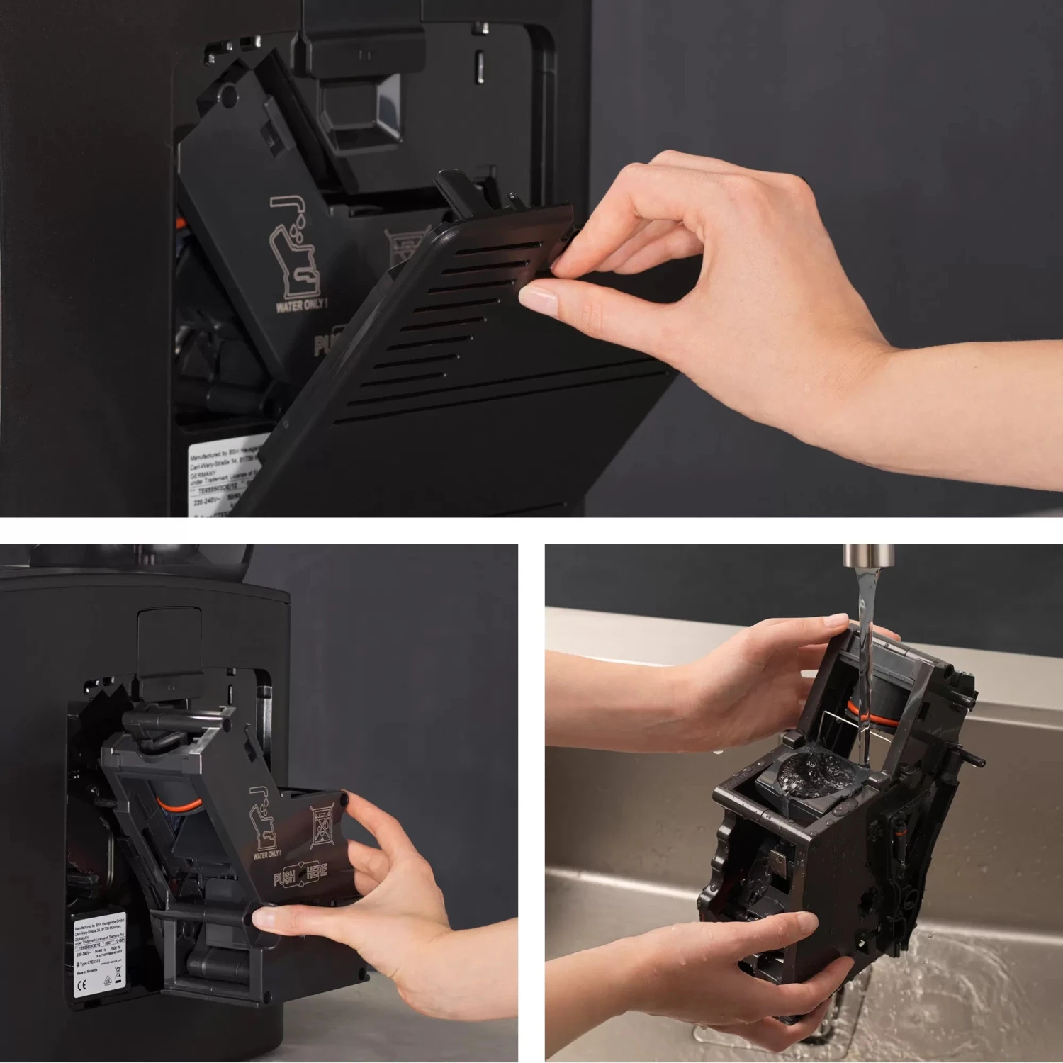 Om je koffiemachine in topconditie te houden is het belangrijk dat je deze goed gaat onderhouden. Gelukkig is dit bij de Siemens EQ.6 plus serie heel eenvoudig. Door middel van de instellingsknop op het touchscreen kan je heel erg gemakkelijk naar het overzicht gaan van het onderhoud. Je machine zal je vertellen wanneer je bijvoorbeeld je lekbak en koffiedikreservoir moet schoonmaken en bijvoorbeeld wanneer je een algemene reiniging moet doen van je zetgroep. Alles is heel gemakkelijk uit de machine te halen om te reinigen. Zo kan je de zetgroep er langs de zijkant van de machine gemakkelijk uithalen om grondig schoon te maken. Dit doe je best eenmaal per week zodat er geen ophoping kan ontstaan van olie- en vetresten en je koffiesmaak niet langzaam achteruit kan gaan. Het is ook belangrijk om op het einde van de dag het gebruikte melksysteem te reinigen met het automatische reinigingsprogramma, zodat er zeker geen dingen zuur kunnen worden in het systeem of de melkslang, en met de Calc’nClean optie heb je één onderhoudsprogramma voor de reinigings- en ontkalkingscyclus. Wanneer je de BRITA-waterfilter gebruikt hoef je maar 4 keer per jaar te ontkalken.