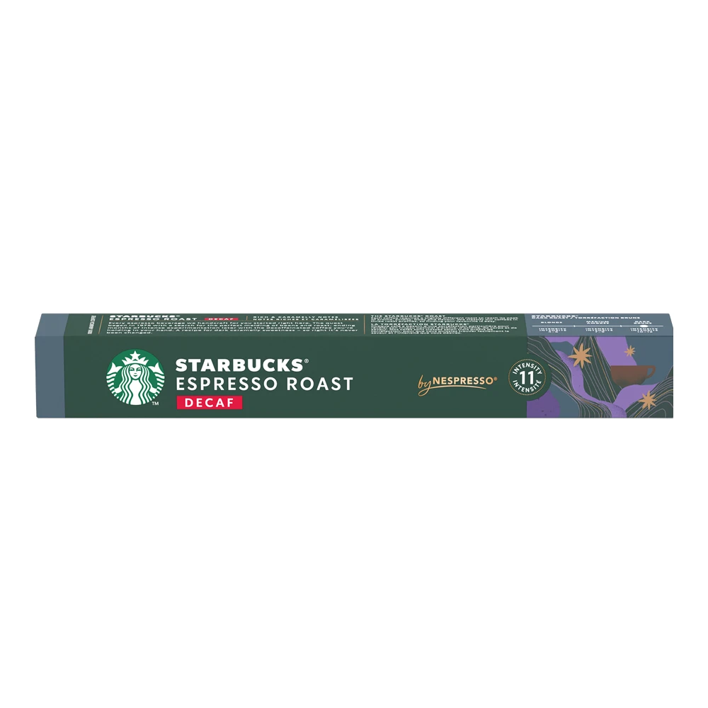 Geniet nu thuis van de Espresso Decaf STARBUCKS® koffie voor uw Nespresso® compatible koffiemachine. De caffeïne vrije Espresso Roast is intens en heeftsmaaktonen van karamel. Een donker gebrande koffie en vormt óók de ideale basis voor een heerlijke latte.